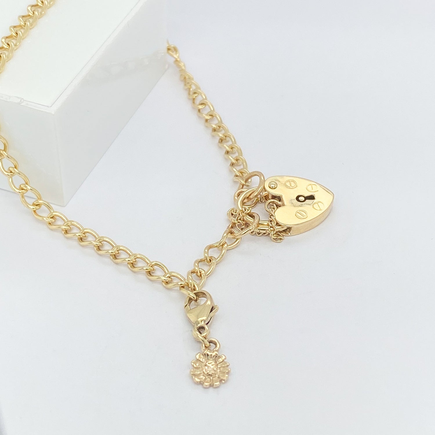Charms Direct Sterling Silver Curb Charm Bracelet With Heart Shape Padlock