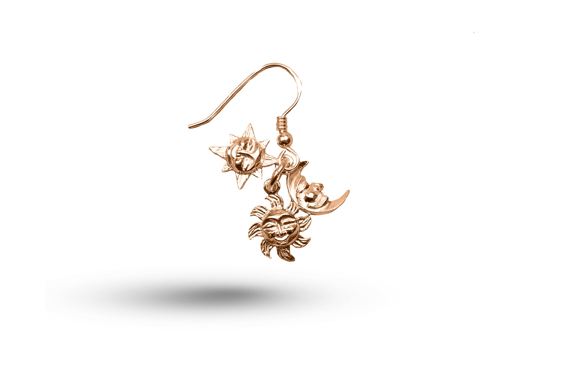 These Sun - Moon and Star Earrings are cast in Silver comes with fitted jump ring and lobster clasp.